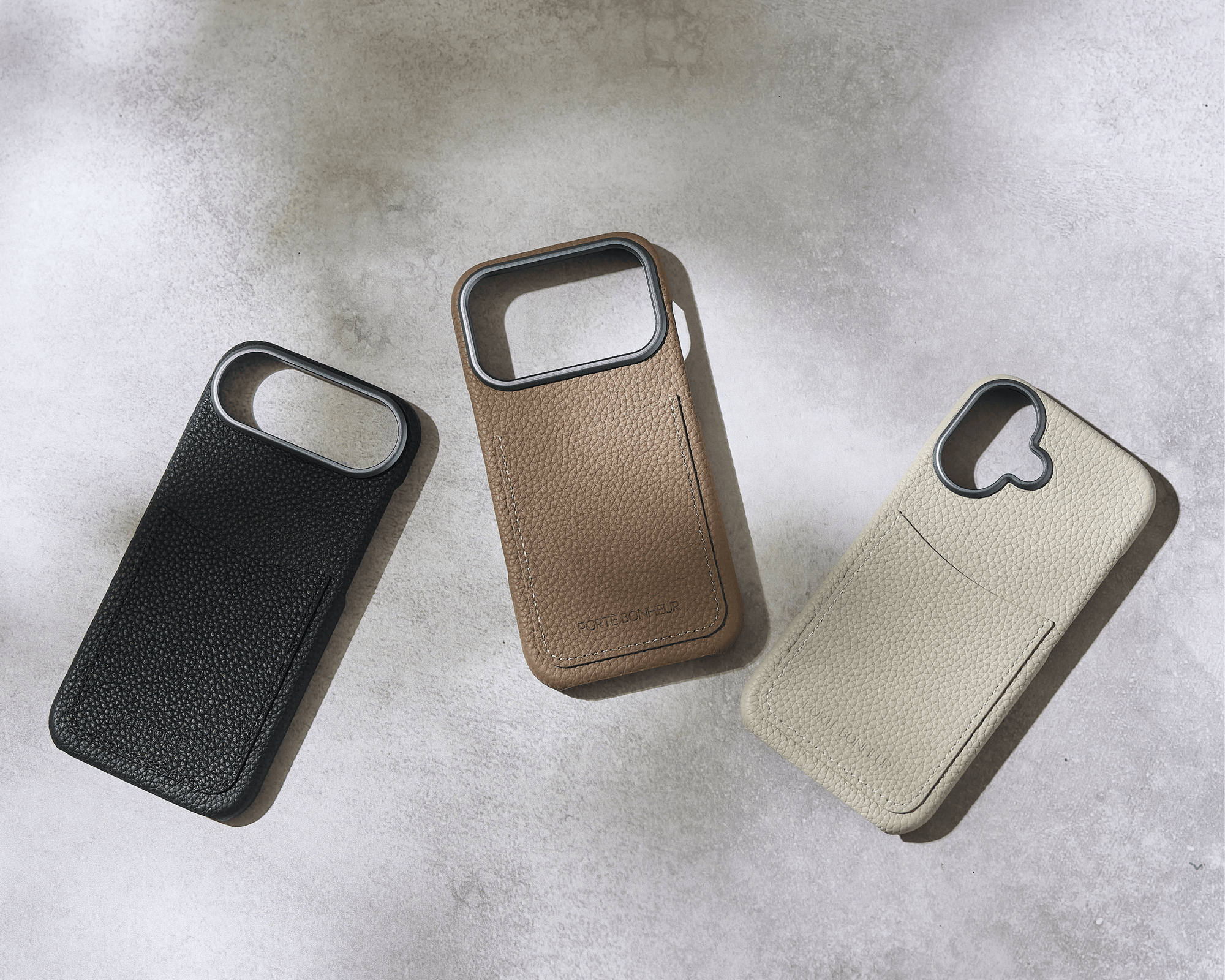 繊細なカメラレンズを守るため、接地面に触れにくいフチ高設計を採用。美しさを保ちながら日常の使用にも安心感をプラスしました。