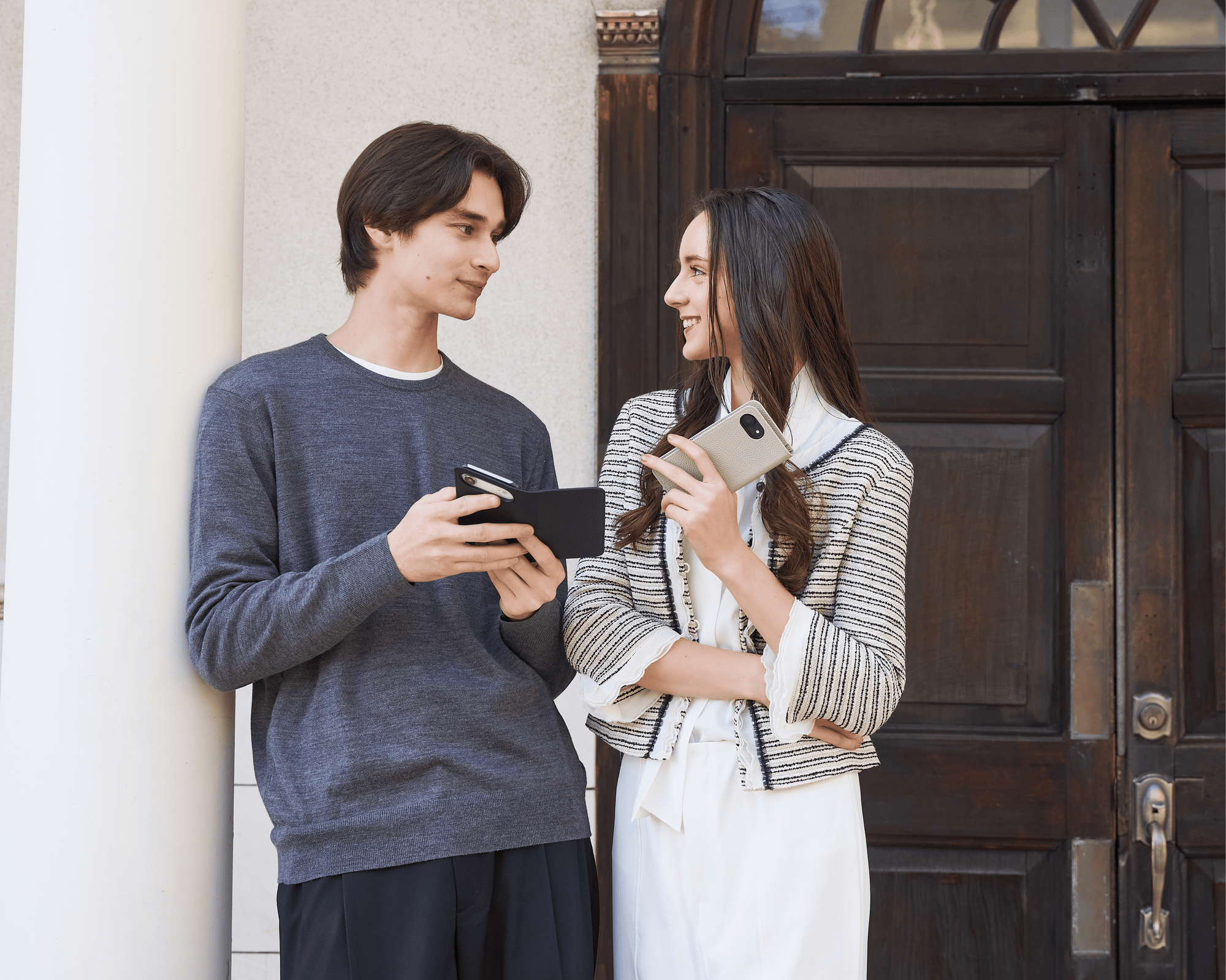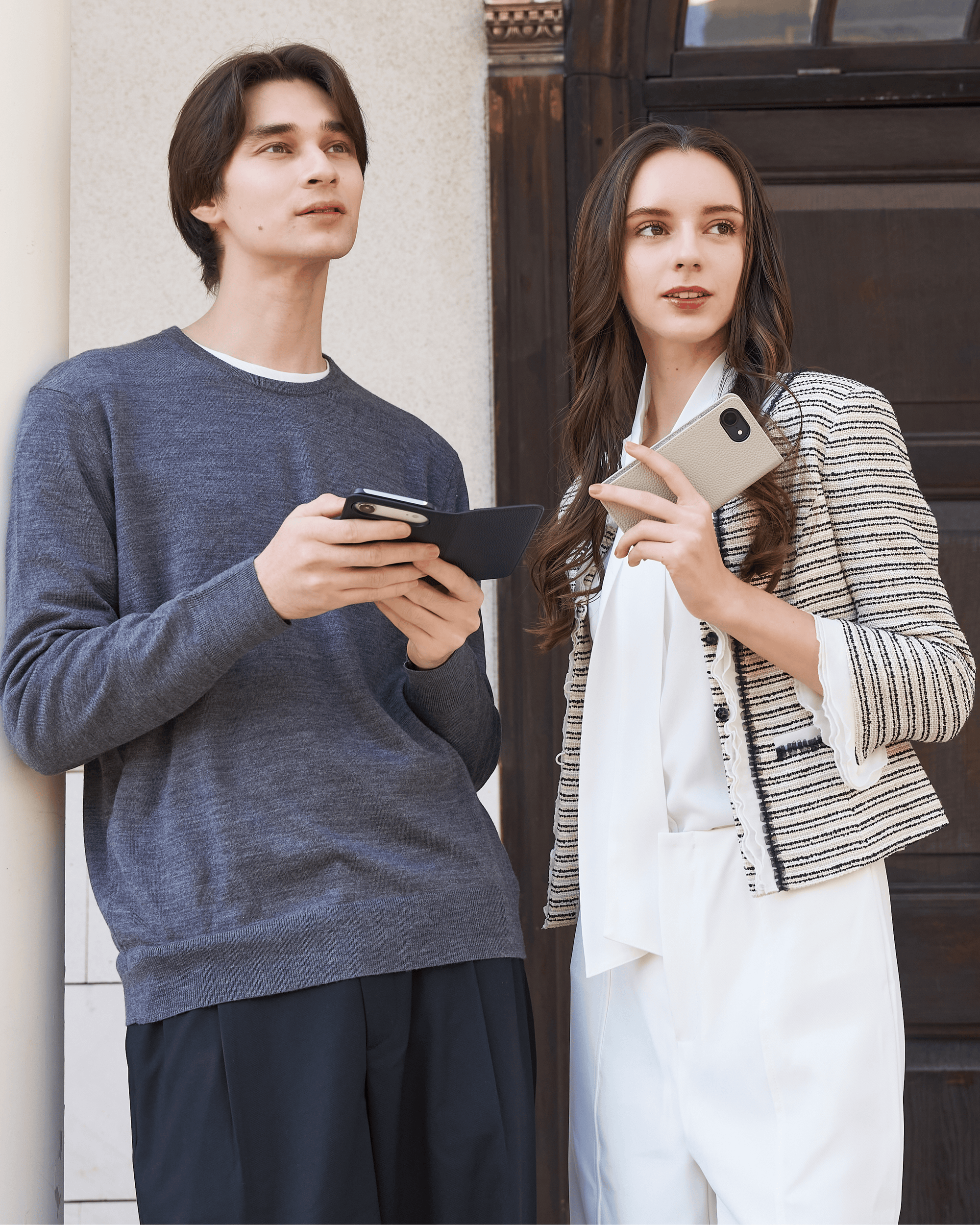 美しいレザーの質感を活かした、ミニマルで洗練されたデザインが魅力のDiary Case コレクション。手帳型の安心感と、使うほどに馴染む上質な素材が、日常にさりげないラグジュアリーを添えます。